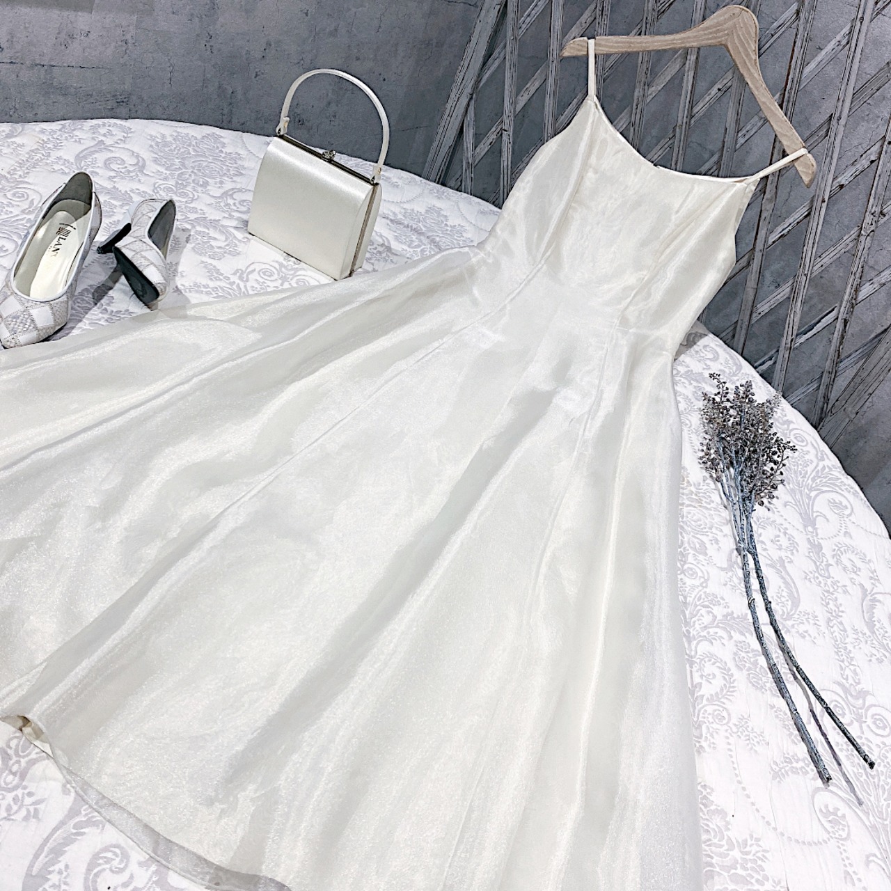 ベースはシンプルなロングドレスになり、計算され尽くした綺麗なシルエットになりますので一枚着るだけでも大変華やかです。