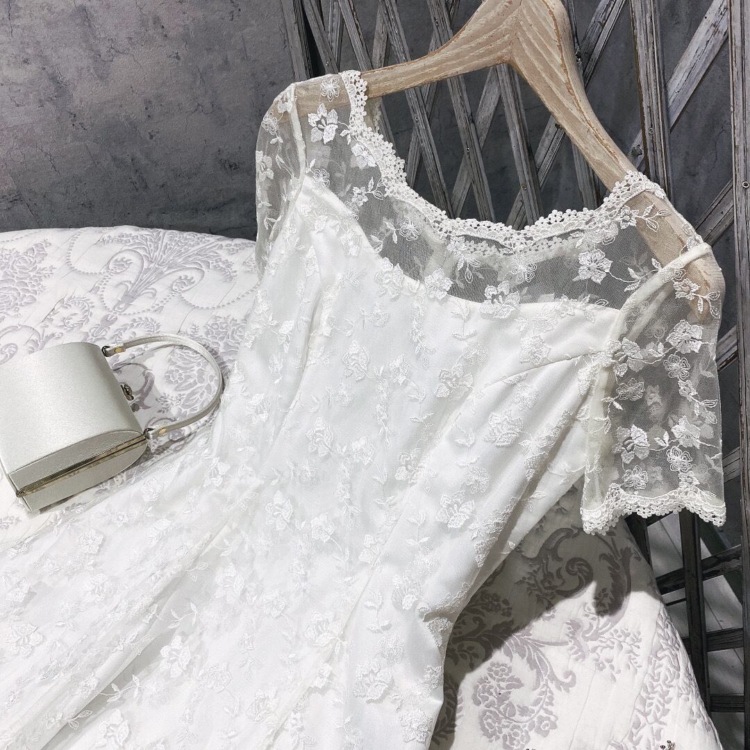 日本製総レース半袖レトロヴィンテージウエディングドレス
