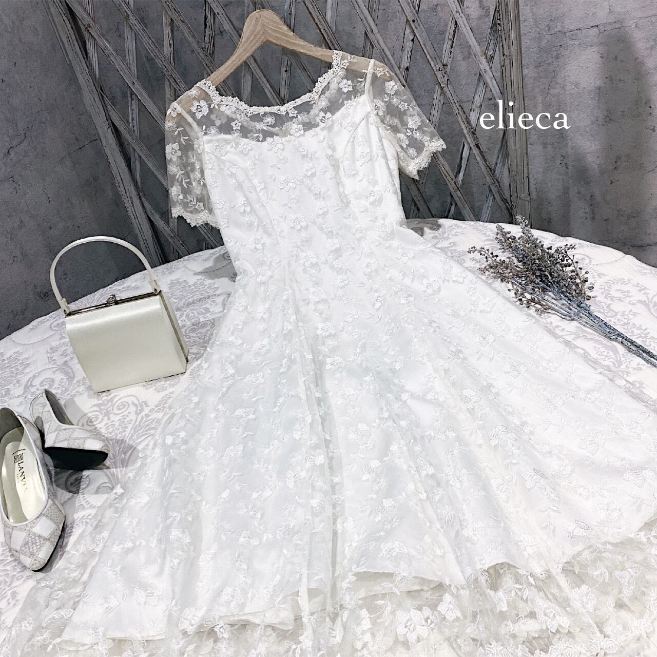 床につくような長めのウエディングドレスではありませんので、前撮りの写真や二次会のドレスとしてもおすすめです。