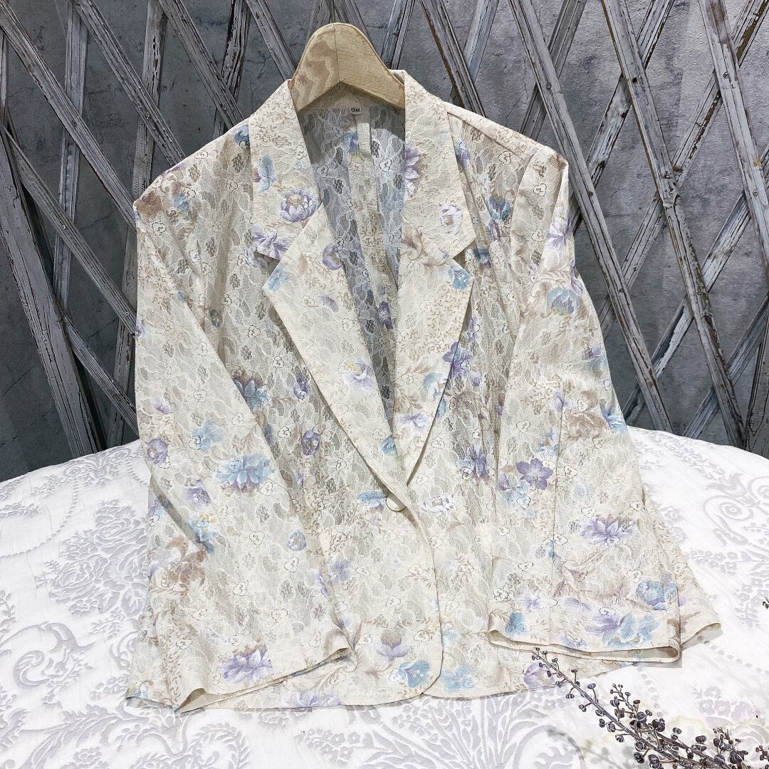 日本製クリーム総レース花柄ヴィンテージテーラードジャケット