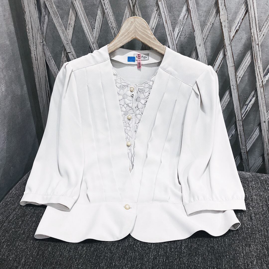 淡い色合いと精巧なお花の刺繍がとても綺麗なブラウスです。