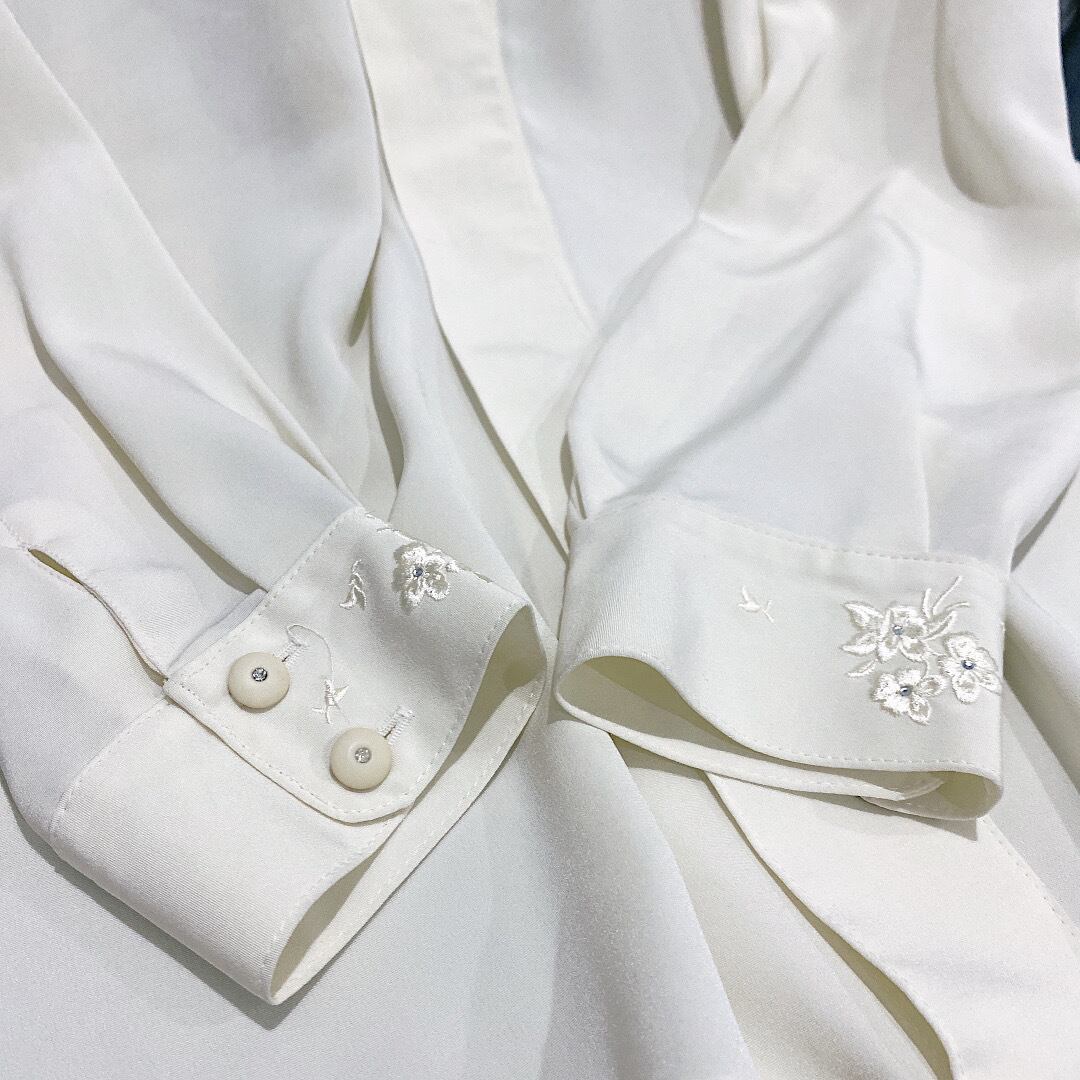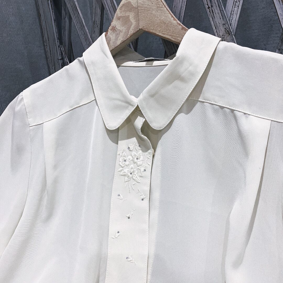 日本製エクリュ花刺繍丸襟長袖オーバーサイズヴィンテージブラウス