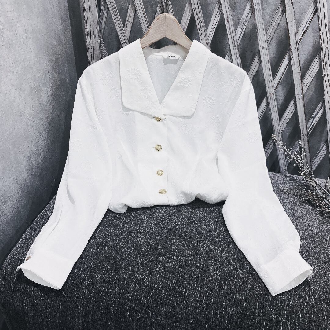 日本製ホワイト花柄フロッキー長袖ヴィンテージオーバーサイズブラウス