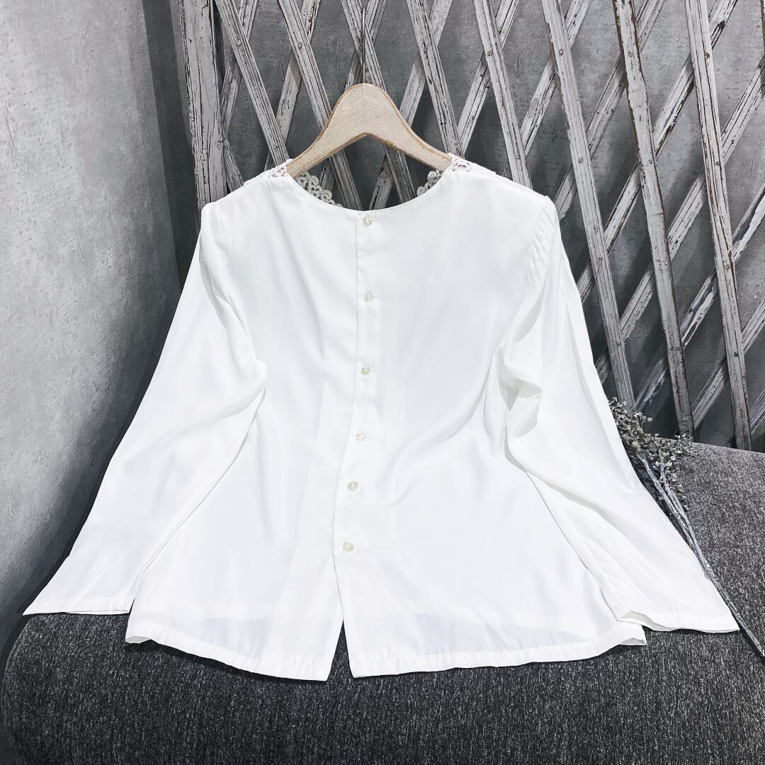 日本製ホワイトVライン刺繍長袖背中ボタンヴィンテージオーバーサイズトップス