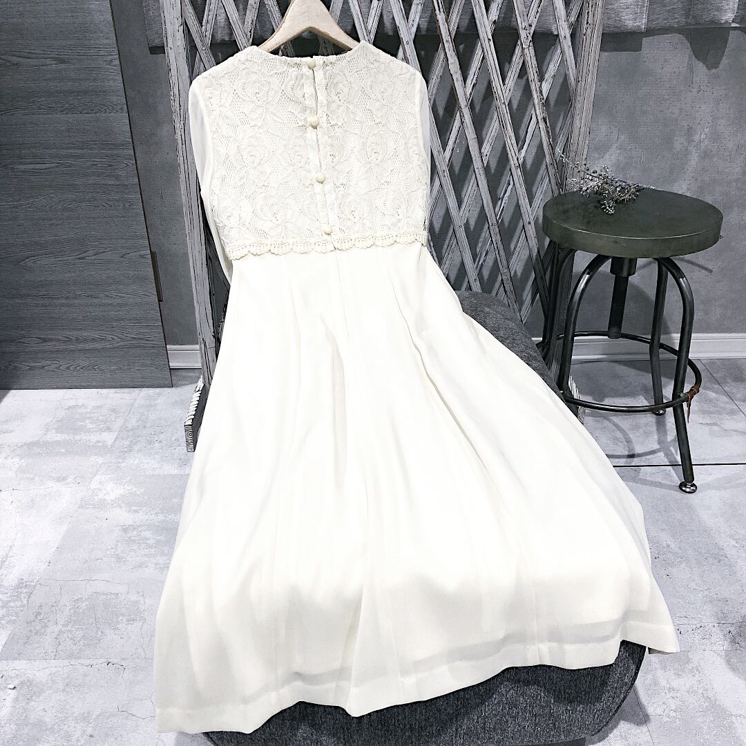 日本製エクリュレースドッキング長袖ヴィンテージロングドレス