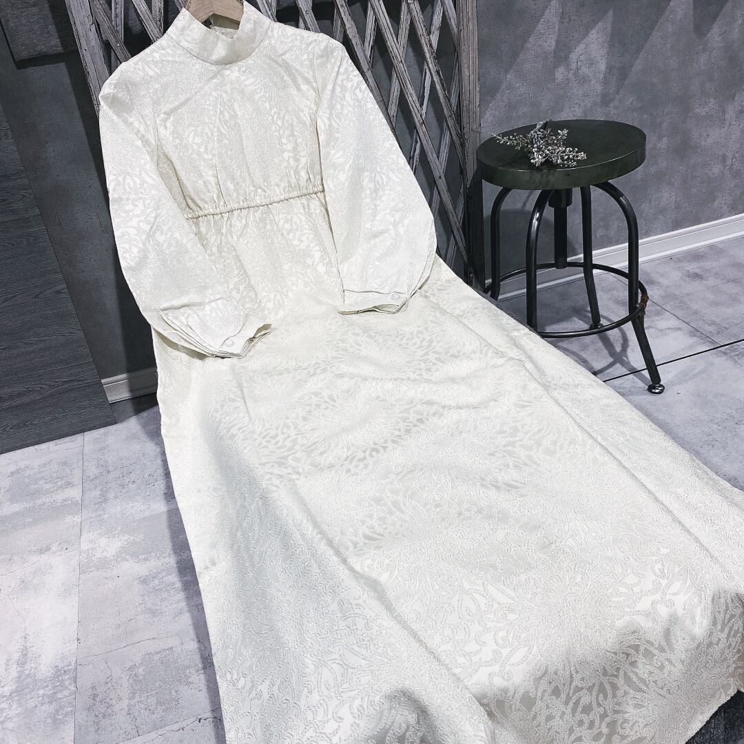 ホワイト総刺繍長袖ヴィンテージロングドレス