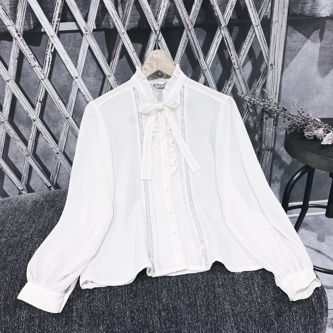 細めのボウタイに細めのレースラインがあしらわれて華奢な雰囲気ですが、シルエットはオーバーサイズ気味というバランスが素晴らしいブラウスです。