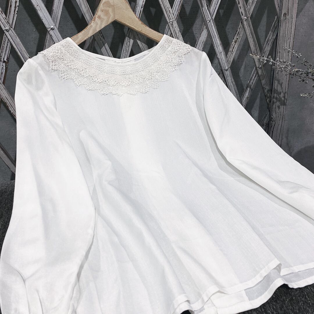 日本製ホワイトデコルテレース刺繍長袖ヴィンテージオーバーサイズブラウス