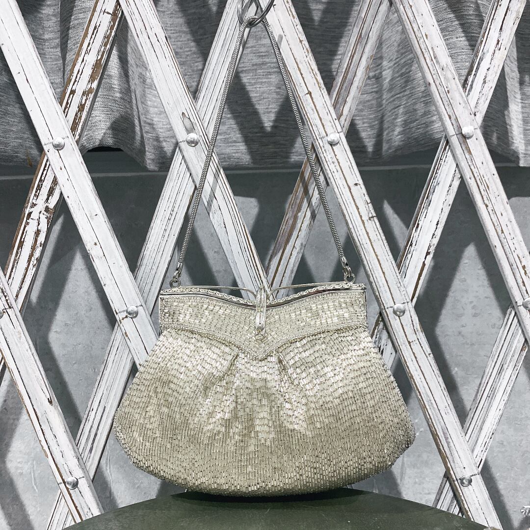シャンパンゴールド総ビーズパーティーバッグ