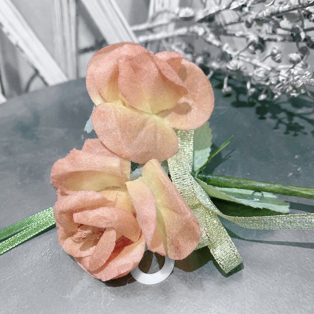 オレンジ薔薇ゴールドリボンヴィンテージコサージュ