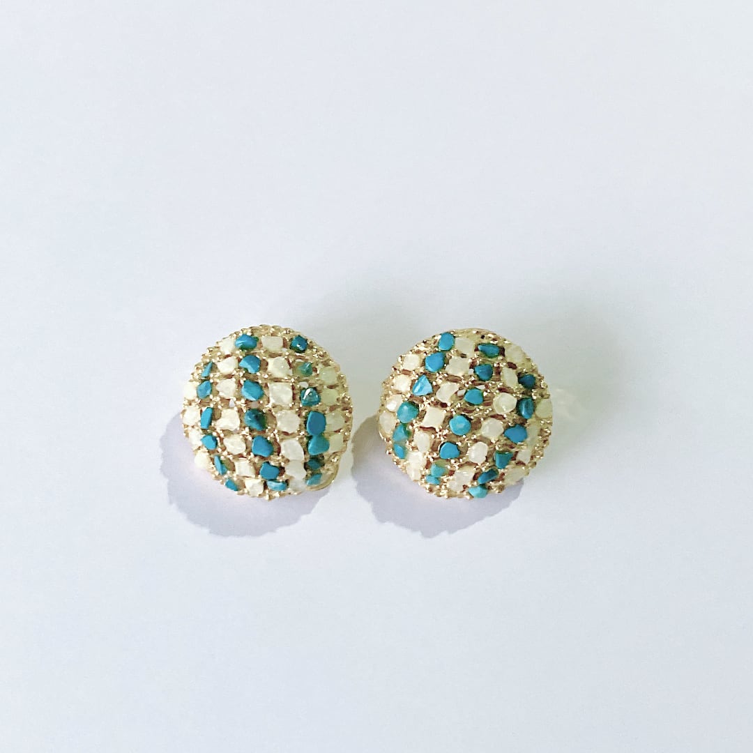 オフホワイトとスカイブルーの小さなストーンが交互にあしらわれているフランス製ヴィンテージイヤリングです。